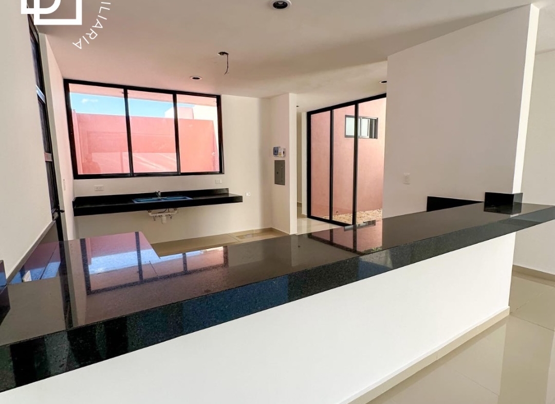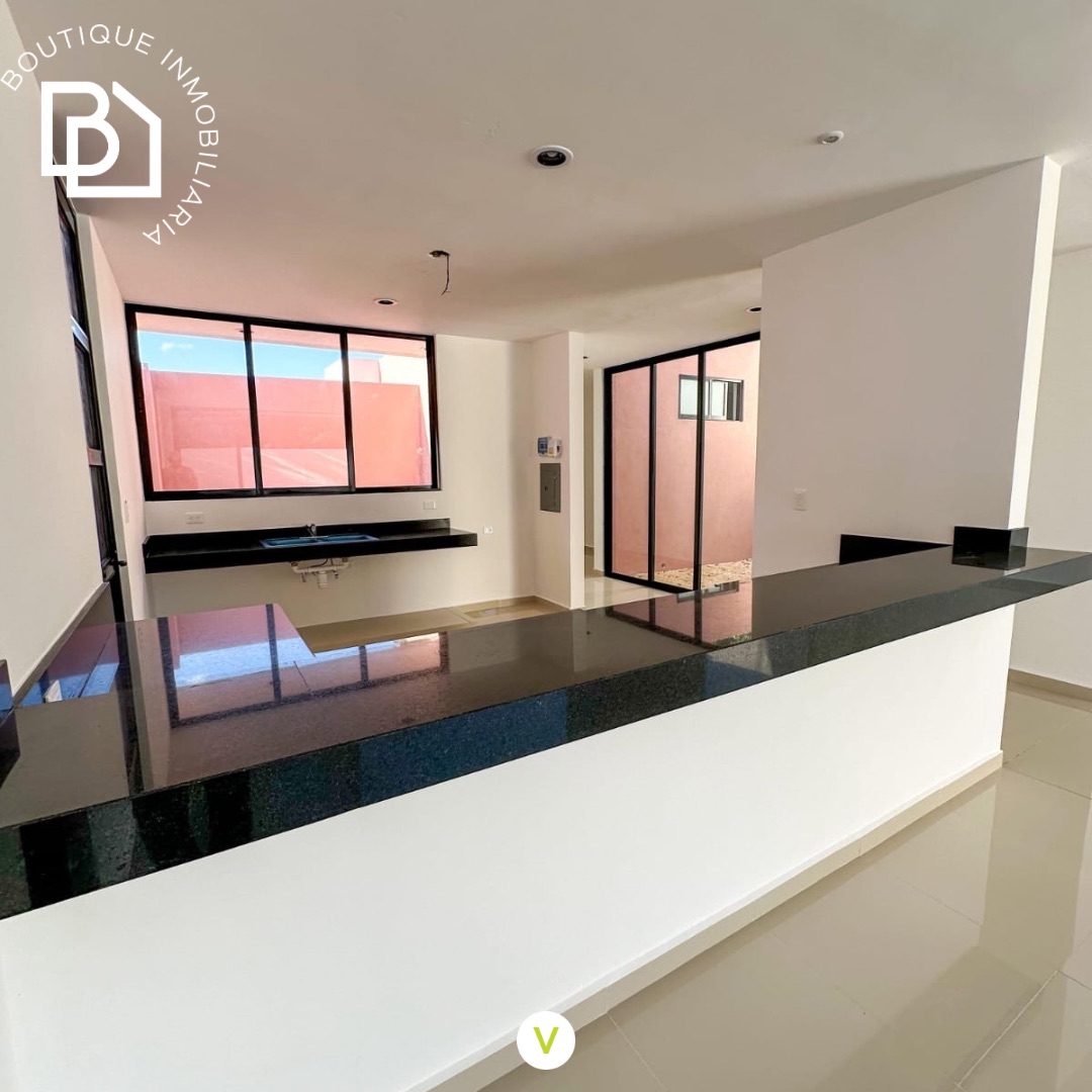 Cocina abierta con barra de granito y desayunador