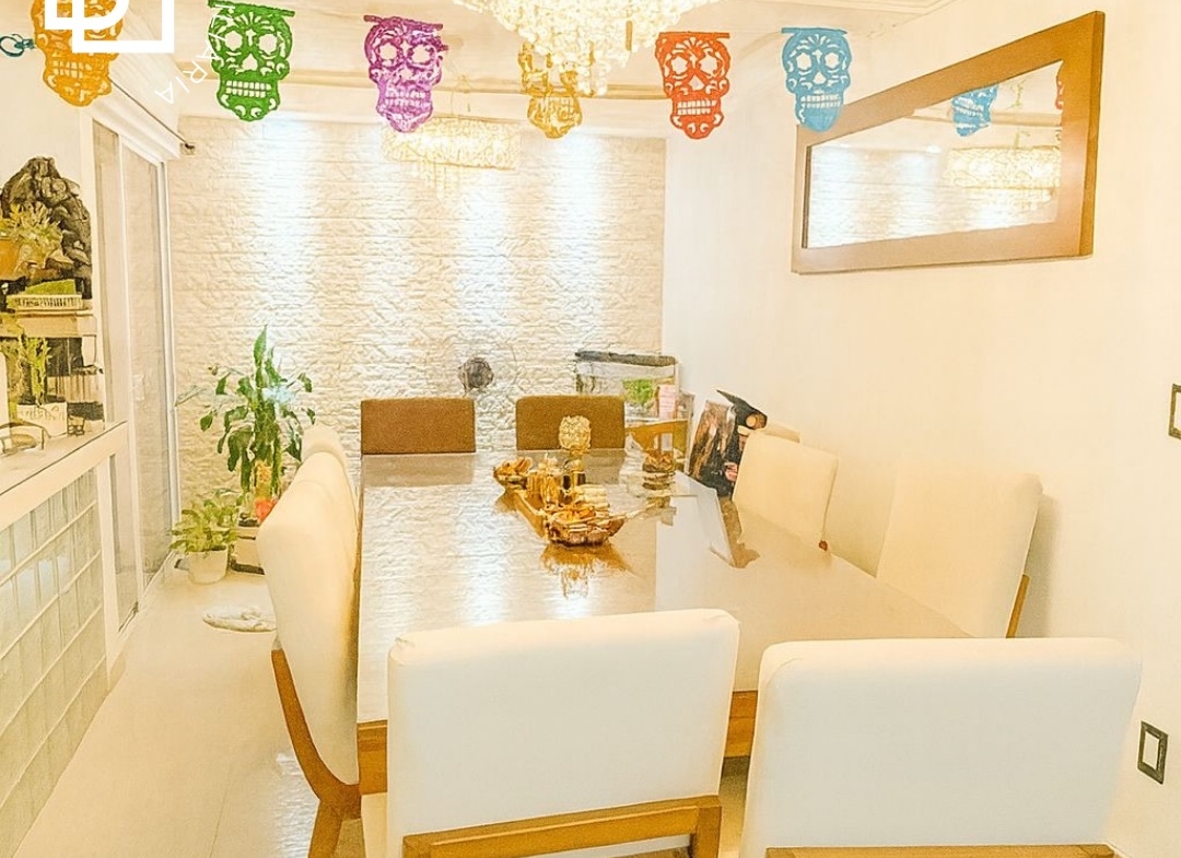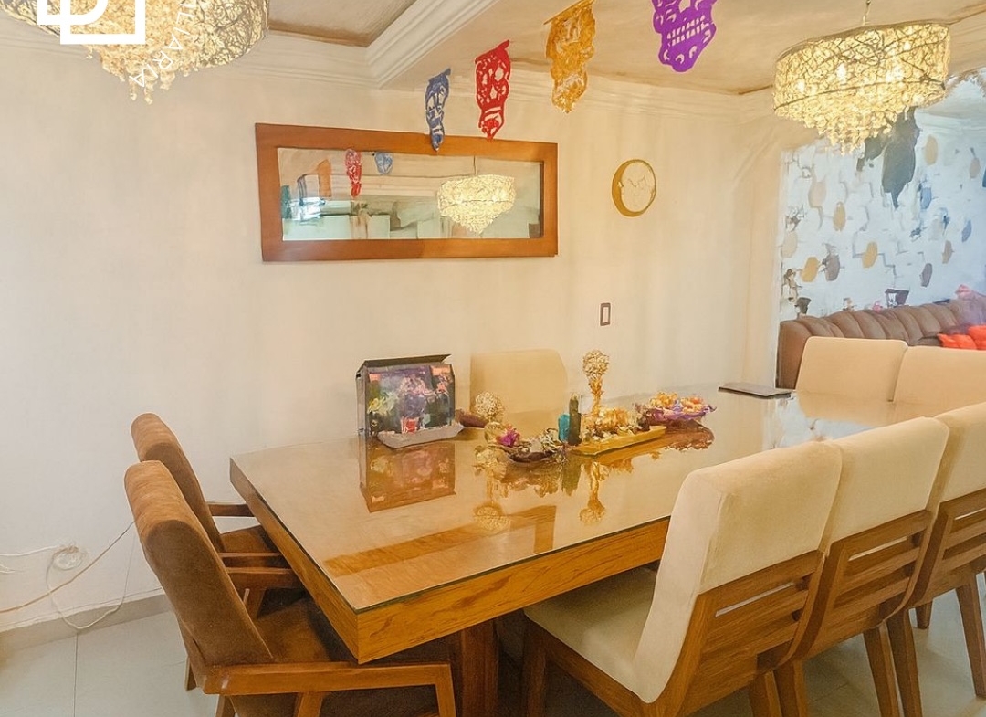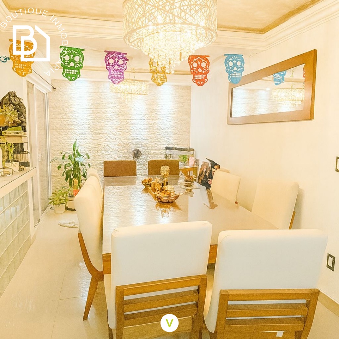 La casa esta perfectamente distribuida en Sala, Comedor, cocina equipada, family room, 3 recamaras con baño completo, la recamara principal tiene walking closet, roof garden, cuarto de lavado, garaje para 2 autos, cisterna de 10 mil litros.
